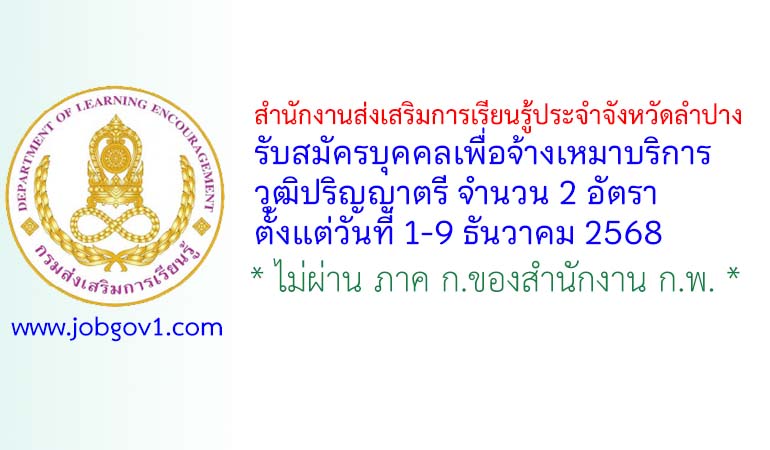 สำนักงานส่งเสริมการเรียนรู้ประจำจังหวัดลำปาง รับสมัครบุคคลเพื่อจ้างเหมาบริการ 2 อัตรา ตั้งแต่วันที่ 1-9 ธันวาคม 2568