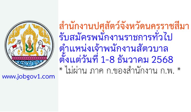 สำนักงานปศุสัตว์จังหวัดนครราชสีมา รับสมัครพนักงานราชการทั่วไป ตำแหน่งเจ้าพนักงานสัตวบาล ตั้งแต่วันที่ 1-8 ธันวาคม 2568