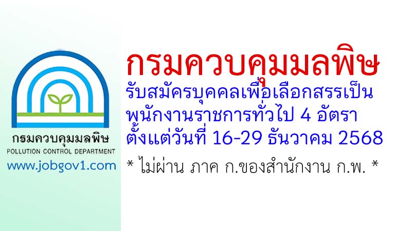 กรมควบคุมมลพิษ รับสมัครบุคคลเพื่อเลือกสรรเป็นพนักงานราชการทั่วไป 4 อัตรา ตั้งแต่วันที่ 16-29 ธันวาคม 2568
