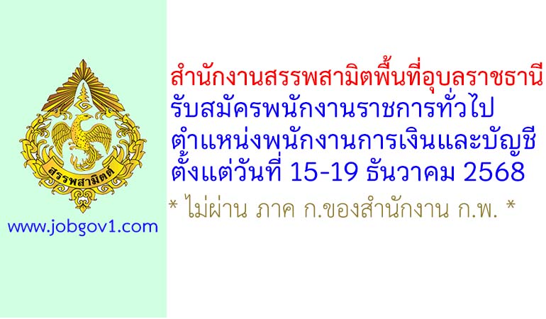 สำนักงานสรรพสามิตพื้นที่อุบลราชธานี รับสมัครพนักงานราชการทั่วไป ตำแหน่งพนักงานการเงินและบัญชี ตั้งแต่วันที่ 15-19 ธันวาคม 2568