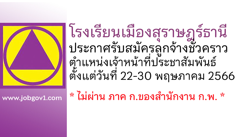 โรงเรียนเมืองสุราษฎร์ธานี รับสมัครลูกจ้างชั่วคราว ตำแหน่งเจ้าหน้าที่ประชาสัมพันธ์ ตั้งแต่วันที่ 22-30 พฤษภาคม 2566