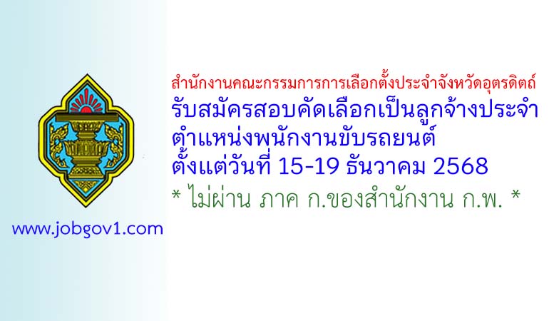 สำนักงานคณะกรรมการการเลือกตั้งประจำจังหวัดอุตรดิตถ์ รับสมัครสอบคัดเลือกเป็นลูกจ้างประจำ ตำแหน่งพนักงานขับรถยนต์ ตั้งแต่วันที่ 15-19 ธันวาคม 2568
