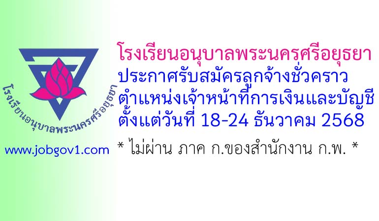 โรงเรียนอนุบาลพระนครศรีอยุธยา รับสมัครลูกจ้างชั่วคราว ตำแหน่งเจ้าหน้าที่การเงินและบัญชี ตั้งแต่วันที่ 18-24 ธันวาคม 2568