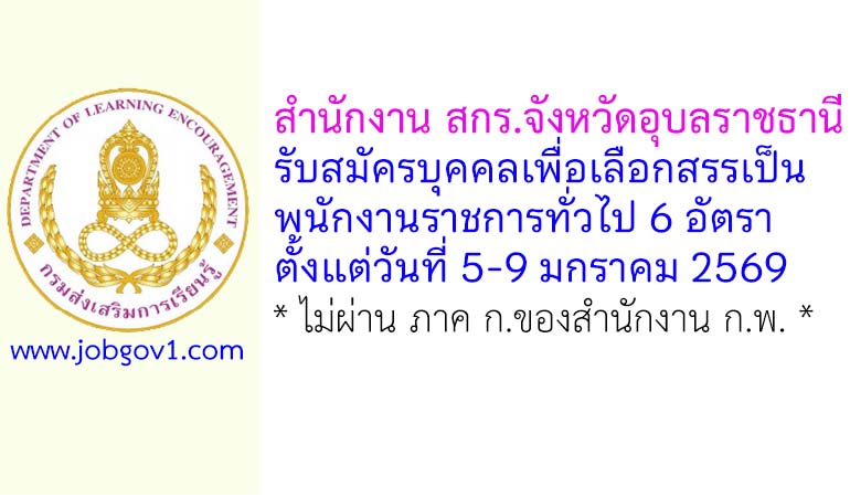 ประกาศสำนักงานส่งเสริมการเรียนรู้ประจำจังหวัดอุบลราชธานี เรื่อง รับสมัครบุคคลเพื่อสรรหาและเลือกสรรเป็นพนักงานราชการทั่วไป