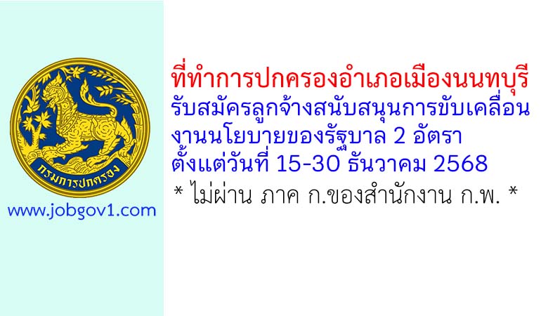 ที่ทำการปกครองอำเภอเมืองนนทบุรี รับสมัครลูกจ้างเหมาบริการ 2 อัตรา ตั้งแต่วันที่ 15-30 ธันวาคม 2568