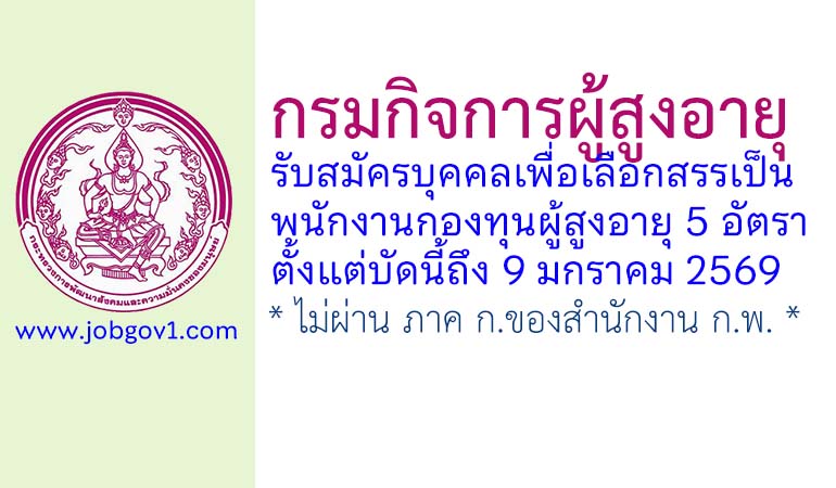 กรมกิจการผู้สูงอายุ รับสมัครบุคคลเพื่อเลือกสรรเป็นพนักงานกองทุนผู้สูงอายุ 5 อัตรา ตั้งแต่บัดนี้ถึง 9 มกราคม 2569