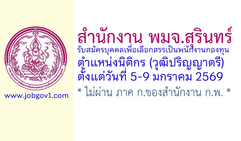 สำนักงาน พมจ.สุรินทร์ รับสมัครบุคคลเพื่อเลือกสรรเป็นพนักงานกองทุน ตำแหน่งนิติกร ตั้งแต่วันที่ 5-9 มกราคม 2569