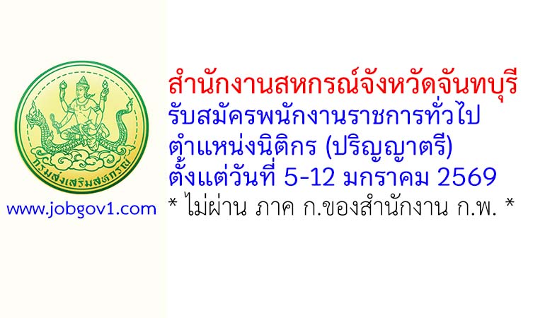 สำนักงานสหกรณ์จังหวัดจันทบุรี รับสมัครพนักงานราชการทั่วไป ตำแหน่งนิติกร ตั้งแต่วันที่ 5-12 มกราคม 2569