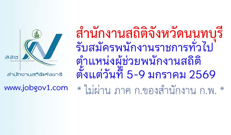 สำนักงานสถิติจังหวัดนนทบุรี รับสมัครพนักงานราชการทั่วไป ตำแหน่งผู้ช่วยพนักงานสถิติ ตั้งแต่วันที่ 5-9 มกราคม 2569