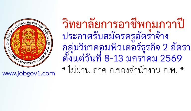 วิทยาลัยการอาชีพกุมภวาปี รับสมัครครูอัตราจ้าง กลุ่มวิชาคอมพิวเตอร์ธุรกิจ จำนวน 2 อัตรา ตั้งแต่วันที่ 8-13 มกราคม 2569