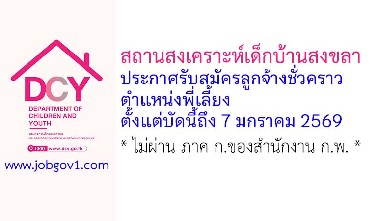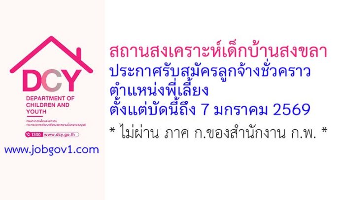 สถานสงเคราะห์เด็กบ้านสงขลา รับสมัครลูกจ้างชั่วคราว ตำแหน่งพี่เลี้ยง ตั้งแต่บัดนี้ถึง 7 มกราคม 2569