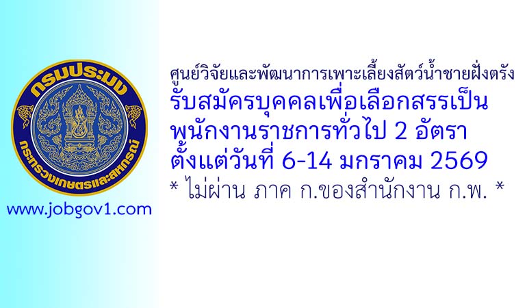 ศูนย์วิจัยและพัฒนาการเพาะเลี้ยงสัตว์น้ำชายฝั่งตรัง รับสมัครบุคคลเพื่อเลือกสรรเป็นพนักงานราชการทั่วไป 2 อัตรา ตั้งแต่วันที่ 6-14 มกราคม 2569