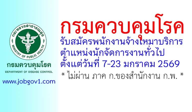กรมควบคุมโรค รับสมัครพนักงานจ้างเหมาบริการ ตำแหน่งนักจัดการงานทั่วไป ตั้งแต่วันที่ 7-23 มกราคม 2569