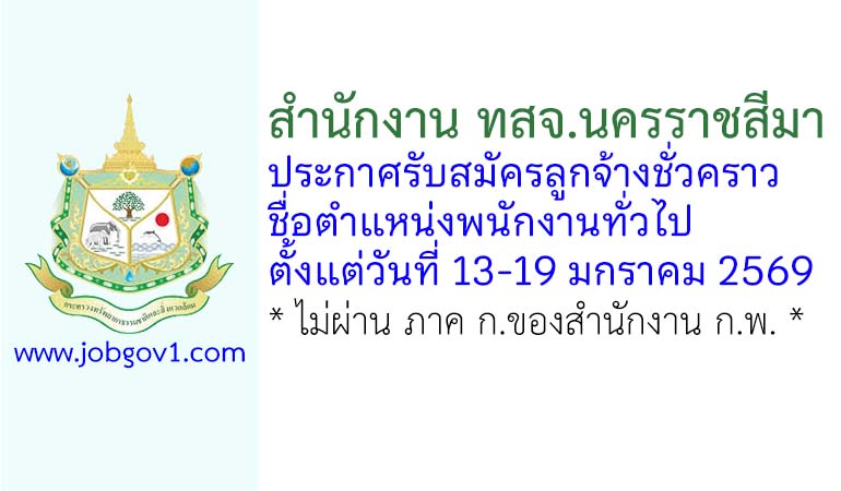 สำนักงาน ทสจ.นครราชสีมา รับสมัครลูกจ้างชั่วคราว ตำแหน่งพนักงานทั่วไป ตั้งแต่วันที่ 13-19 มกราคม 2569