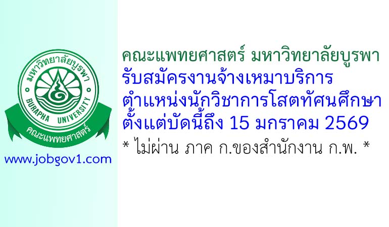 คณะแพทยศาสตร์ มหาวิทยาลัยบูรพา รับสมัครงานจ้างเหมาบริการ ตำแหน่งนักวิชาการโสตทัศนศึกษา ตั้งแต่บัดนี้ถึง 15 มกราคม 2569