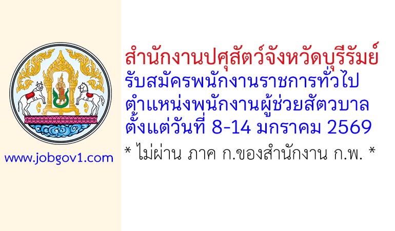 สำนักงานปศุสัตว์จังหวัดบุรีรัมย์ รับสมัครพนักงานราชการทั่วไป ตำแหน่งพนักงานผู้ช่วยสัตวบาล ตั้งแต่วันที่ 8-14 มกราคม 2569
