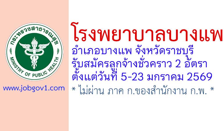 โรงพยาบาลบางแพ รับสมัครสอบคัดเลือกลูกจ้างชั่วคราว 2 อัตรา ตั้งแต่วันที่ 5-23 มกราคม 2569