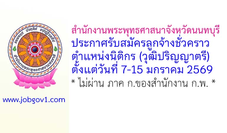 สำนักงานพระพุทธศาสนาจังหวัดนนทบุรี รับสมัครลูกจ้างชั่วคราว ตำแหน่งนิติกร(ปริญญาตรี) ตั้งแต่วันที่ 7-15 มกราคม 2569