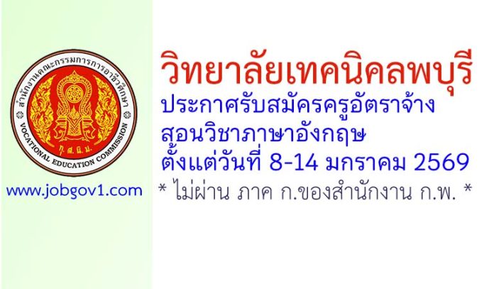 วิทยาลัยเทคนิคลพบุรี รับสมัครครูอัตราจ้าง สอนแผนกวิชาสามัญสัมพันธ์ (ภาษาอังกฤษ) ตั้งแต่วันที่ 8-14 มกราคม 2569