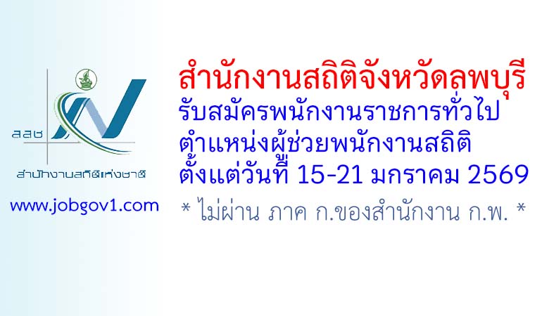 สำนักงานสถิติจังหวัดลพบุรี รับสมัครพนักงานราชการทั่วไป ตำแหน่งผู้ช่วยพนักงานสถิติ ตั้งแต่วันที่ 15-21 มกราคม 2569