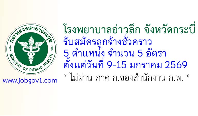 โรงพยาบาลอ่าวลึก จังหวัดกระบี่ รับสมัครลูกจ้างชั่วคราว 5 อัตรา ตั้งแต่วันที่ 9-15 มกราคม 2569