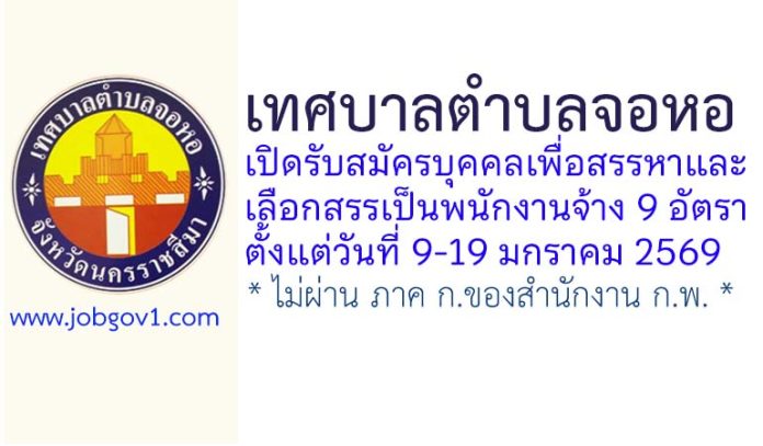 เทศบาลตำบลจอหอ รับสมัครบุคคลเพื่อสรรหาและเลือกสรรเป็นพนักงานจ้าง 9 อัตรา ตั้งแต่วันที่ 9-19 มกราคม 2569