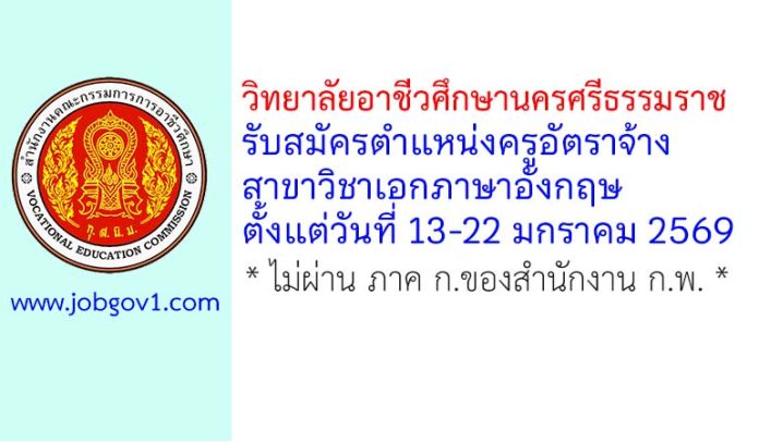 วิทยาลัยอาชีวศึกษานครศรีธรรมราช รับสมัครครูอัตราจ้าง สาขาวิชาเอกภาษาอังกฤษ ตั้งแต่วันที่ 13-22 มกราคม 2569