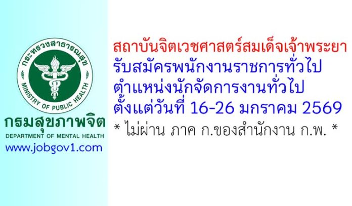 ประกาศกรมสุขภาพจิต เรื่อง รับสมัครบุคคลเพื่อเลือกสรรเป็นพนักงานราชการทั่วไป ในตำแหน่งนักจัดการงานทั่วไป สถาบันจิตเวชศาสตร์สมเด็จเจ้าพระยา