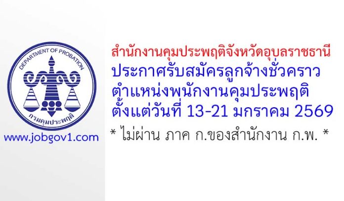 สำนักงานคุมประพฤติจังหวัดอุบลราชธานี รับสมัครลูกจ้างชั่วคราว ตำแหน่งพนักงานคุมประพฤติ ตั้งแต่วันที่ 13-21 มกราคม 2569