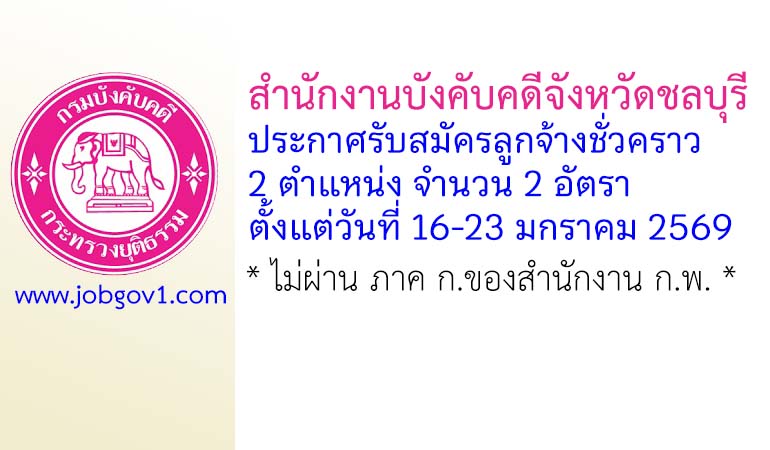 สำนักงานบังคับคดีจังหวัดชลบุรี รับสมัครลูกจ้างชั่วคราว 2 อัตรา ตั้งแต่วันที่ 16-23 มกราคม 2569