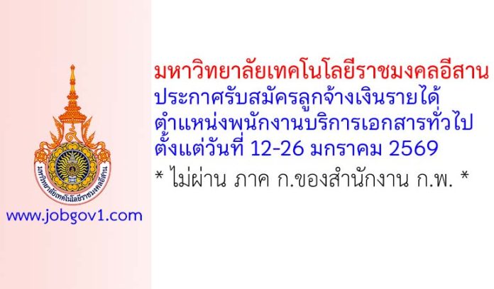 มหาวิทยาลัยเทคโนโลยีราชมงคลอีสาน รับสมัครลูกจ้างเงินรายได้ ตำแหน่งพนักงานบริการเอกสารทั่วไป ตั้งแต่วันที่ 12-26 มกราคม 2569