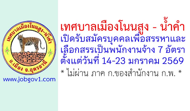 เทศบาลเมืองโนนสูง – น้ำคำ รับสมัครบุคคลเพื่อสรรหาและเลือกสรรเป็นพนักงานจ้าง 7 อัตรา ตั้งแต่วันที่ 14-23 มกราคม 2569