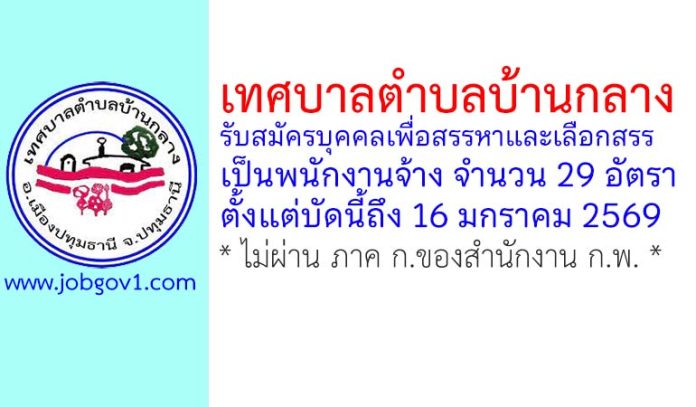 เทศบาลตำบลบ้านกลาง รับสมัครบุคคลเพื่อสรรหาและเลือกสรรเป็นพนักงานจ้าง 29 อัตรา ตั้งแต่บัดนี้ถึง 16 มกราคม 2569