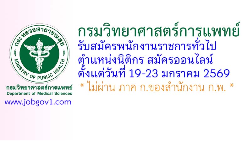 กรมวิทยาศาสตร์การแพทย์ รับสมัครพนักงานราชการทั่วไป ตำแหน่งนิติกร ตั้งแต่วันที่ 19-23 มกราคม 2569