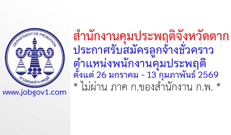 สำนักงานคุมประพฤติจังหวัดตาก รับสมัครลูกจ้างชั่วคราว ตำแหน่งพนักงานคุมประพฤติ ตั้งแต่ 26 มกราคม – 13 กุมภาพันธ์ 2569