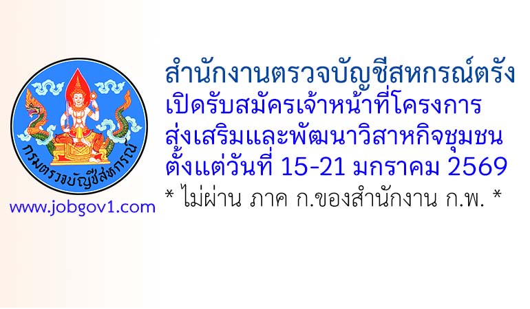 สำนักงานตรวจบัญชีสหกรณ์ตรัง รับสมัครเจ้าหน้าที่โครงการส่งเสริมและพัฒนาวิสาหกิจชุมชน ตั้งแต่วันที่ 15-21 มกราคม 2569
