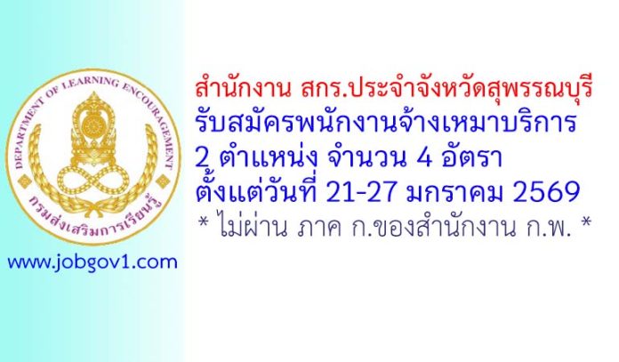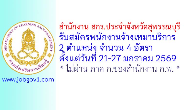 ประกาศสำนักงานส่งเสริมการเรียนรู้ประจำจังหวัดสุพรรณบุรี เรื่อง รับสมัครคัดเลือกบุคคลเพื่อเป็นจ้างเหมาบริการเอกชนดำเนินงานของส่วนราชการ