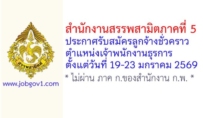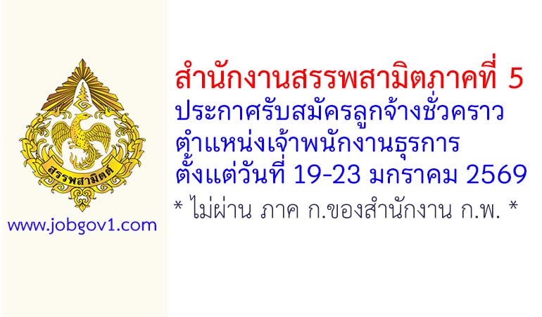 สำนักงานสรรพสามิตภาคที่ 5 รับสมัครลูกจ้างชั่วคราว ตำแหน่งเจ้าพนักงานธุรการ ตั้งแต่วันที่ 19-23 มกราคม 2569