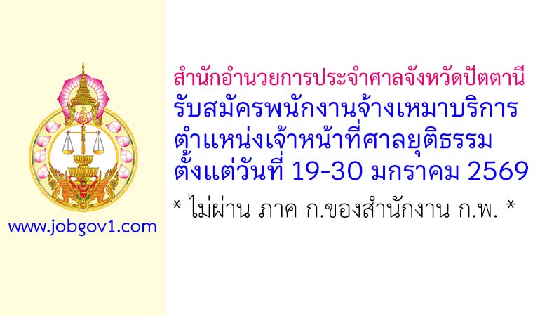 สำนักอำนวยการประจำศาลจังหวัดปัตตานี รับสมัครพนักงานจ้างเหมาบริการ ตำแหน่งเจ้าหน้าที่ศาลยุติธรรม ตั้งแต่วันที่ 19-30 มกราคม 2569