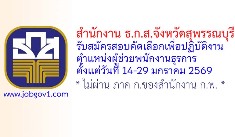 สำนักงาน ธ.ก.ส.จังหวัดสุพรรณบุรี รับสมัครสอบคัดเลือกเข้าปฏิบัติงาน ตำแหน่งผู้ช่วยพนักงานธุรการ ตั้งแต่วันที่ 14-29 มกราคม 2569