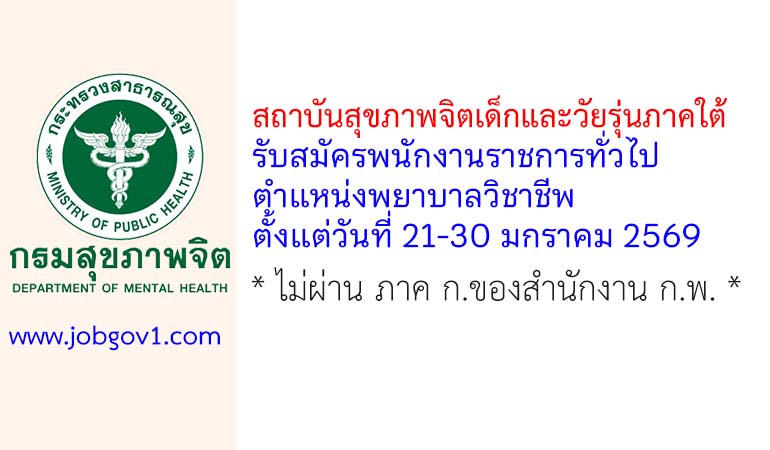 สถาบันสุขภาพจิตเด็กและวัยรุ่นภาคใต้ รับสมัครพนักงานราชการทั่วไป ตำแหน่งพยาบาลวิชาชีพ ตั้งแต่วันที่ 21-30 มกราคม 2569