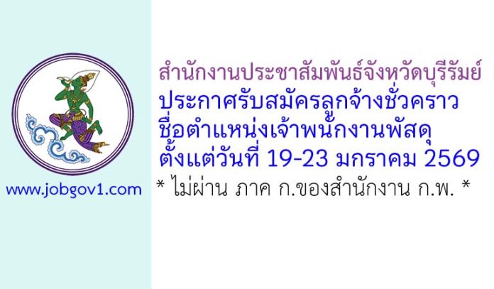 สำนักงานประชาสัมพันธ์จังหวัดบุรีรัมย์ รับสมัครลูกจ้างชั่วคราว ตำแหน่งเจ้าพนักงานพัสดุ ตั้งแต่วันที่ 19-23 มกราคม 2569