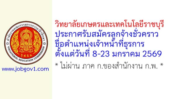 วิทยาลัยเกษตรและเทคโนโลยีราชบุรี รับสมัครลูกจ้างชั่วคราว ตำแหน่งเจ้าหน้าที่ธุรการ ตั้งแต่วันที่ 8-23 มกราคม 2569