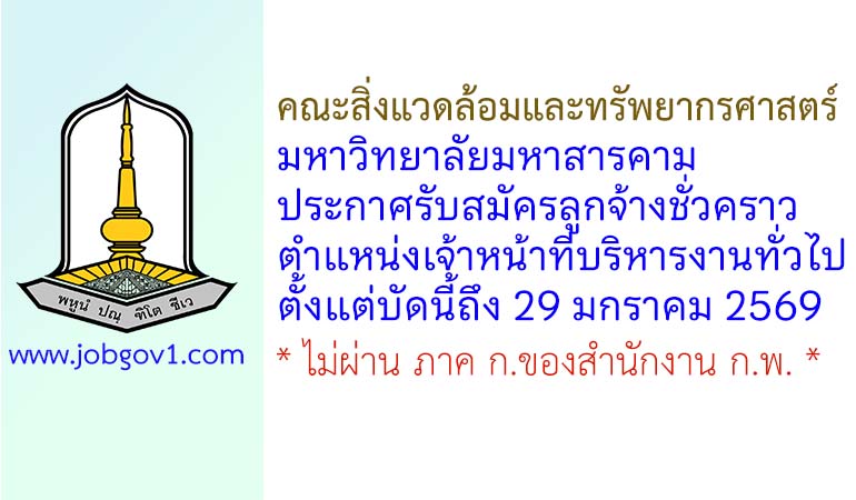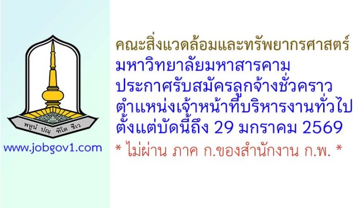 คณะสิ่งแวดล้อมและทรัพยากรศาสตร์ มหาวิทยาลัยมหาสารคาม รับสมัครลูกจ้างชั่วคราว ตำแหน่งเจ้าหน้าที่บริหารงานทั่วไป ตั้งแต่บัดนี้ถึง 29 มกราคม 2569