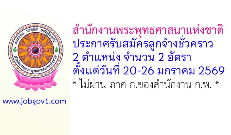 สำนักงานพระพุทธศาสนาแห่งชาติ รับสมัครลูกจ้างชั่วคราว 2 อัตรา ตั้งแต่วันที่ 20-26 มกราคม 2569
