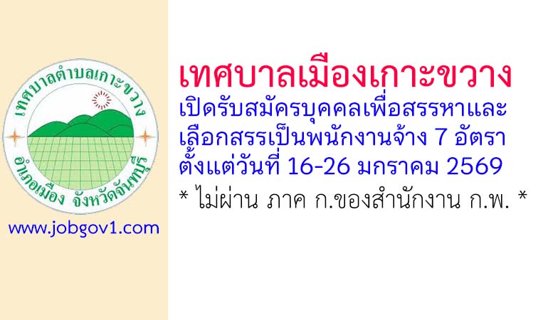 เทศบาลเมืองเกาะขวาง รับสมัครบุคคลเพื่อสรรหาและเลือกสรรเป็นพนักงานจ้าง 7 อัตรา ตั้งแต่วันที่ 16-26 มกราคม 2569