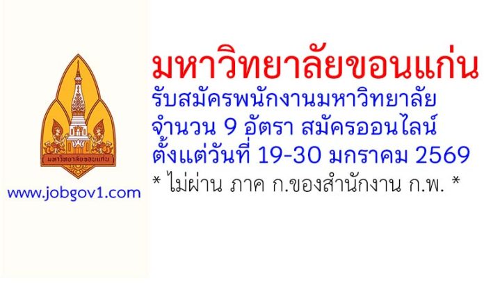 มหาวิทยาลัยขอนแก่น รับสมัครพนักงานมหาวิทยาลัย 9 อัตรา ตั้งแต่วันที่ 19-30 มกราคม 2569