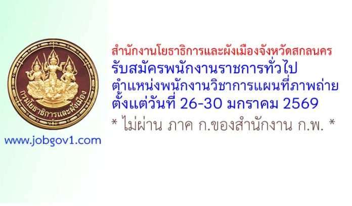 สำนักงานโยธาธิการและผังเมืองจังหวัดสกลนคร รับสมัครพนักงานราชการทั่วไป ตำแหน่งพนักงานวิชาการแผนที่ภาพถ่าย ตั้งแต่วันที่ 26-30 มกราคม 2569