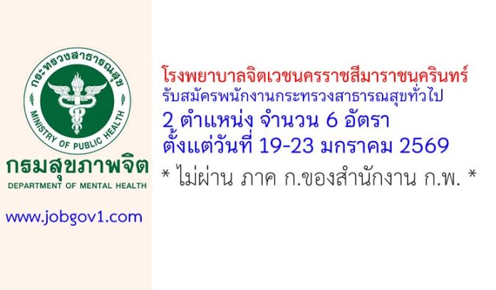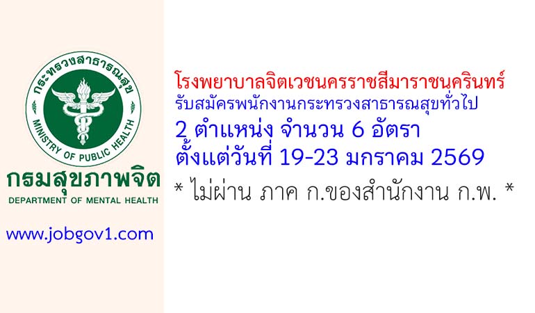 โรงพยาบาลจิตเวชนครราชสีมาราชนครินทร์ รับสมัครพนักงานกระทรวงสาธารณสุขทั่วไป 6 อัตรา ตั้งแต่วันที่ 19-23 มกราคม 2569