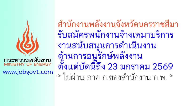 สำนักงานพลังงานจังหวัดนครราชสีมา รับสมัครพนักงานจ้างเหมาบริการ งานสนับสนุนการดำเนินงานด้านการอนุรักษ์พลังงาน